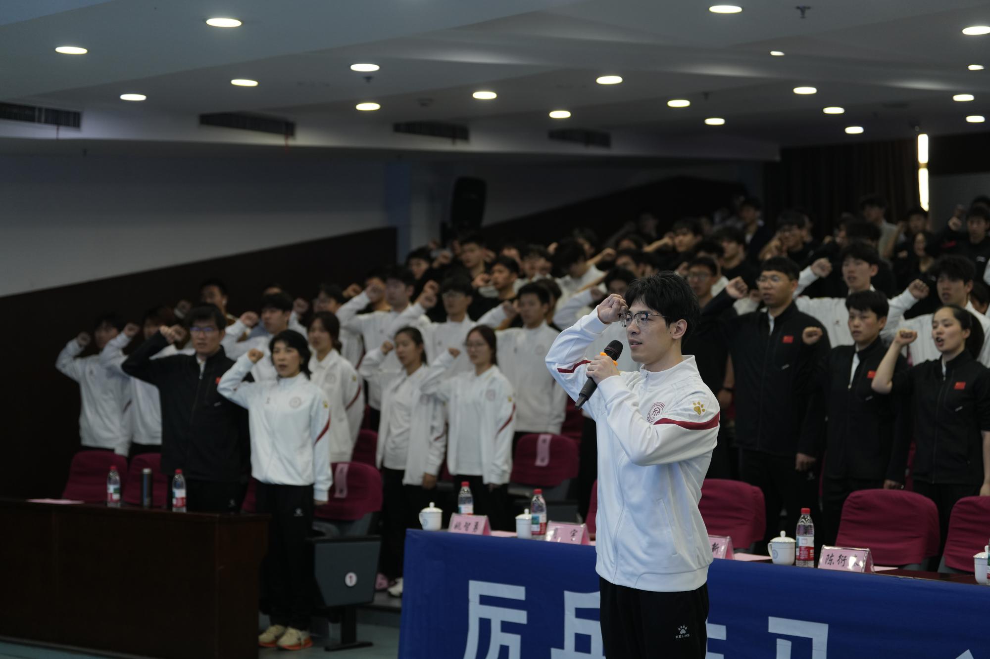 相关职能部门、体育部负责人,全体教练员、运动员参加出征仪式。